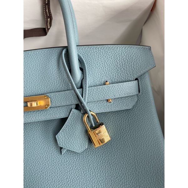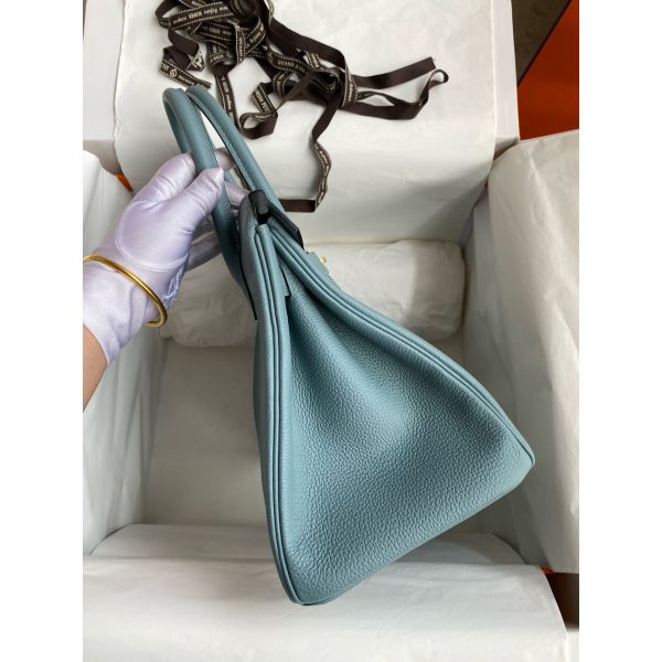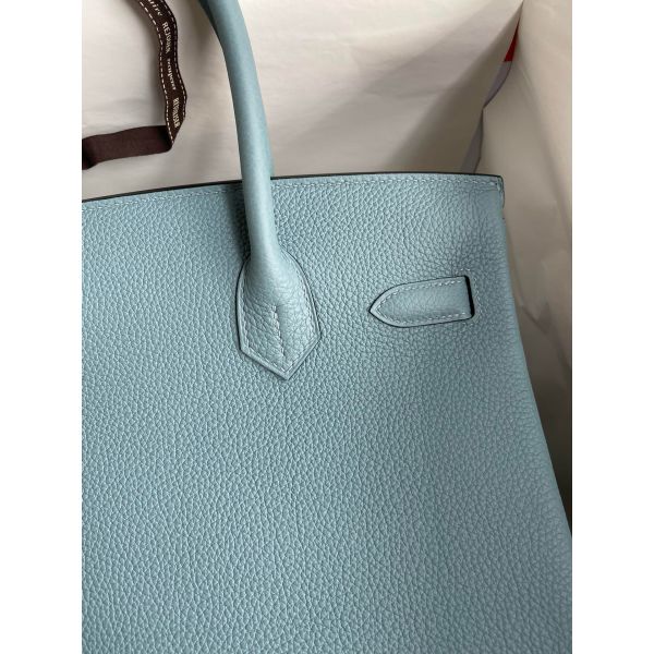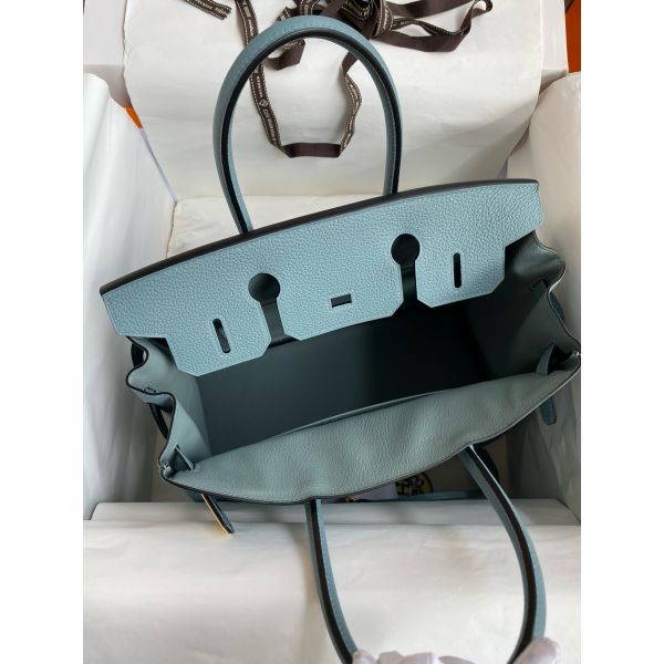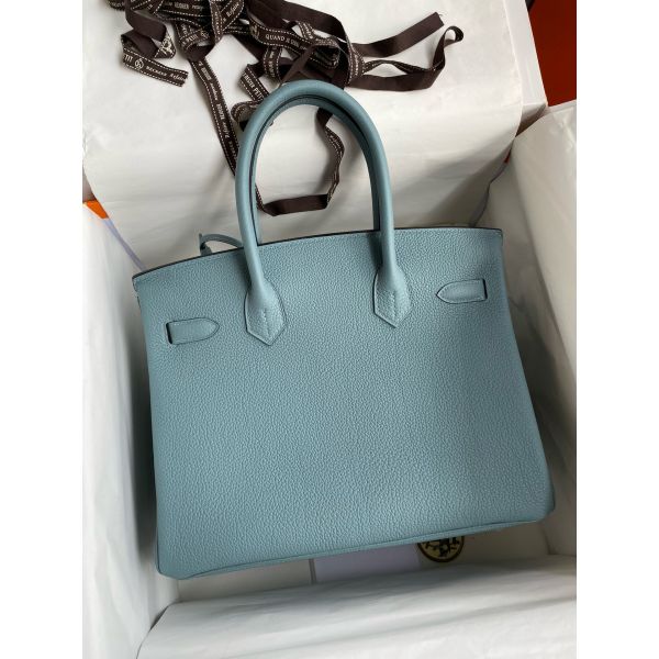Hermes Birkin 30 Retourne Handmade Bag In Ciel Clemence Leather