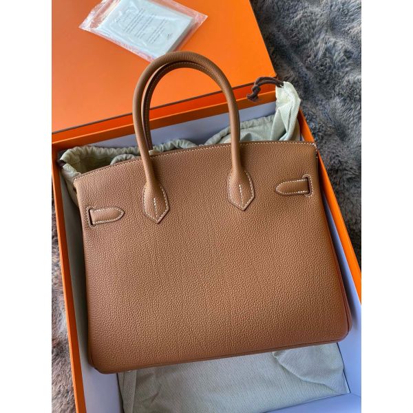 The original Hermès Birkin bag was inspired by and named after 60’s fashion icon Jane Birkin. It was designed to be a luxury bag that would meet the needs and stand up to daily use by a multitasking woman on the go. The Birkin 30 is the Goldilocks of the Birkin bag family, It is the ideal Hermès bag for everyday use. Created in Retourne style, gives this bag the buttery soft feel. Fashioned from Togo leather, which owes its name to the theme of the year of its creation: Africa.