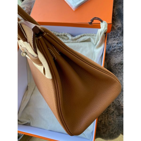 Hermes Birkin 30 Retourne Handmade Bag in Gold Togo Leather