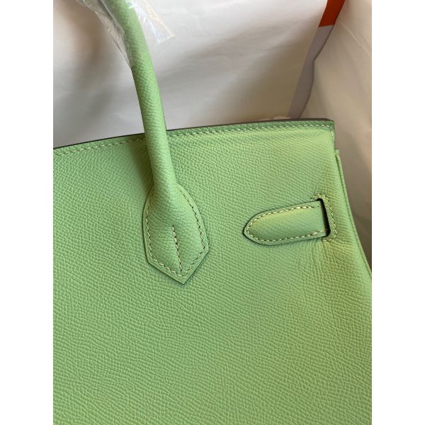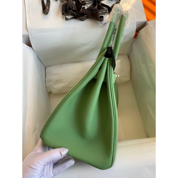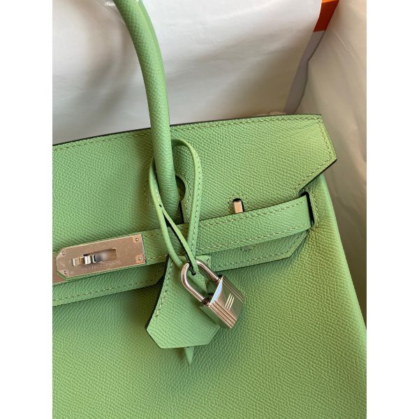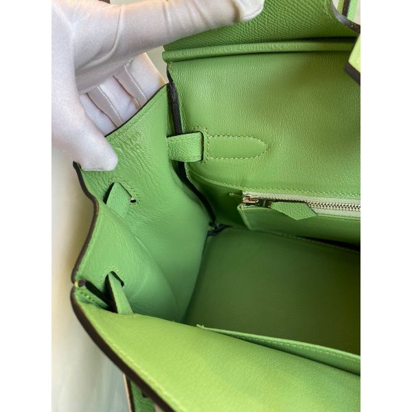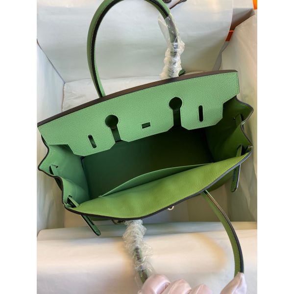 Hermes Birkin 30 Retourne Handmade Bag In Vert Criquet Epsom Calfskin