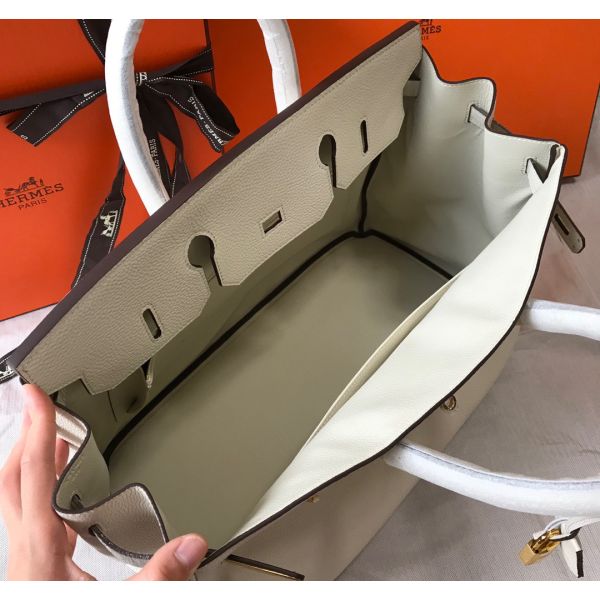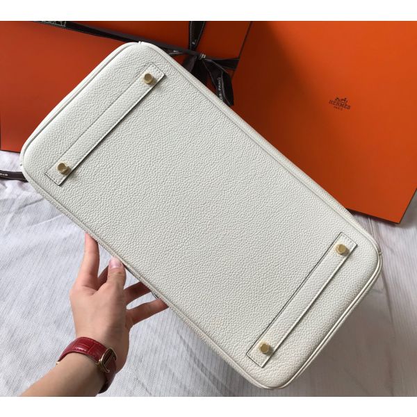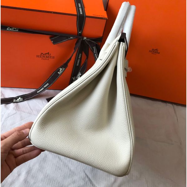 Hermes Birkin 40 Handmade Bag In White Clemence Leather