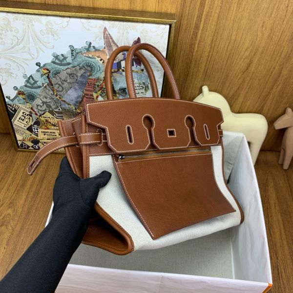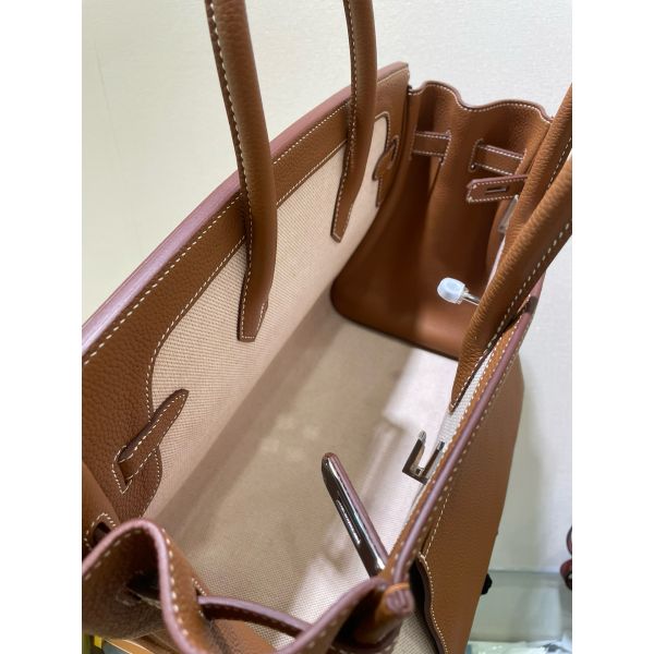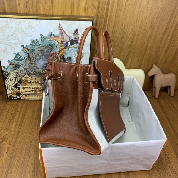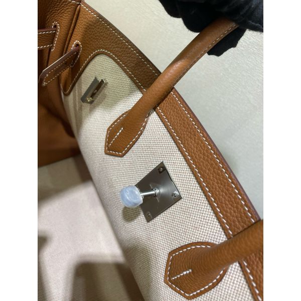 Hermes Birkin à l’envers 35 Bag in Gold Clemence Leather and Canvas