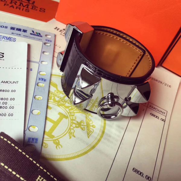 Feast your eyes on the fabulous and rare Hermes Geranium Alligator Collier de Chien Cuff Bracelet. Inspired by the ever-chic Collier de chien belt that was first introduced in 1927, the bracelet is believed to have been introduced into retail in the 1940s. This is a favorite among collectors and celebrities and for good reason. With it’s gorgeous design and craftsmanship, this bracelet is great for everyday wear and is the perfect accessory for just about everything.