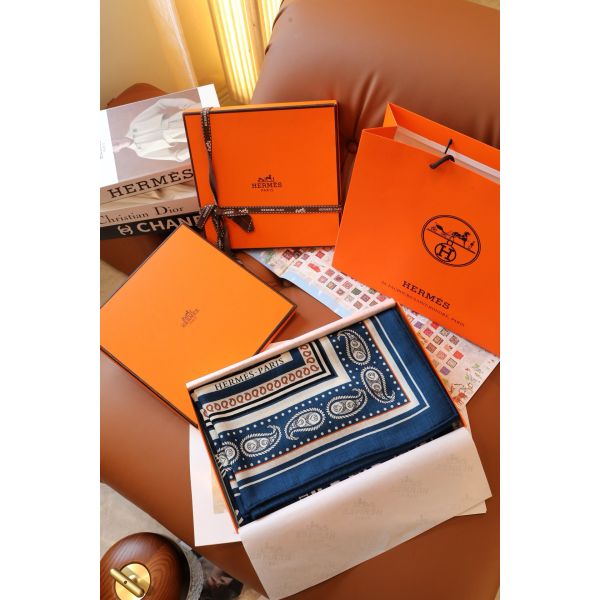 Hermes Blue Tatouages Marins Bandana Shawl 140