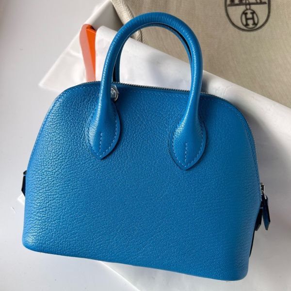 Hermes Bolide 1923 Mini Handmade Bag In Blue Frida Chevre Mysore Leather