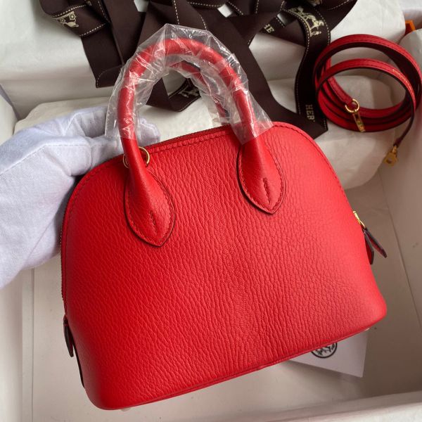 Hermes Bolide 1923 Mini Handmade Bag In Red Chevre Mysore Leather