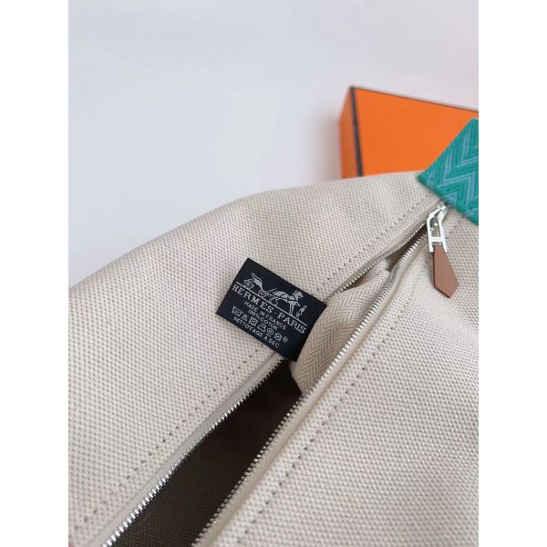 Hermes Bride-a-Brac Large Case in Ecru Canvas with Green Zigzag Motifs