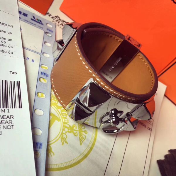 Hermes Brown Epsom Collier de Chien Bracelet Size S