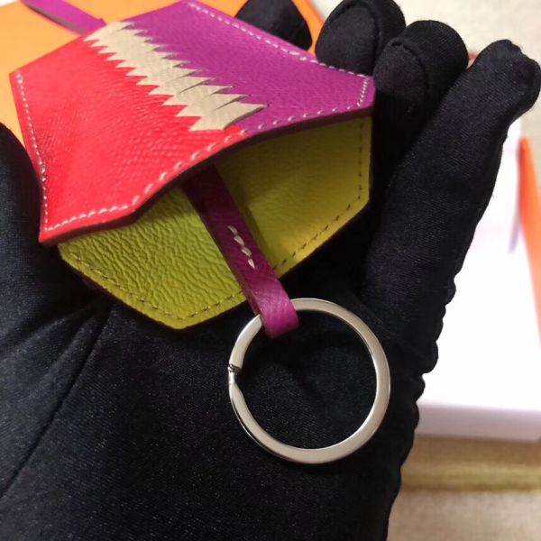 This Clochette Cles grand tressage charm from Hermes displays a braided patterns, the multicolours Epsom leather has a different take on the pattern inside. This iconic material is beautifully crafted into a case that houses a key ring inside.