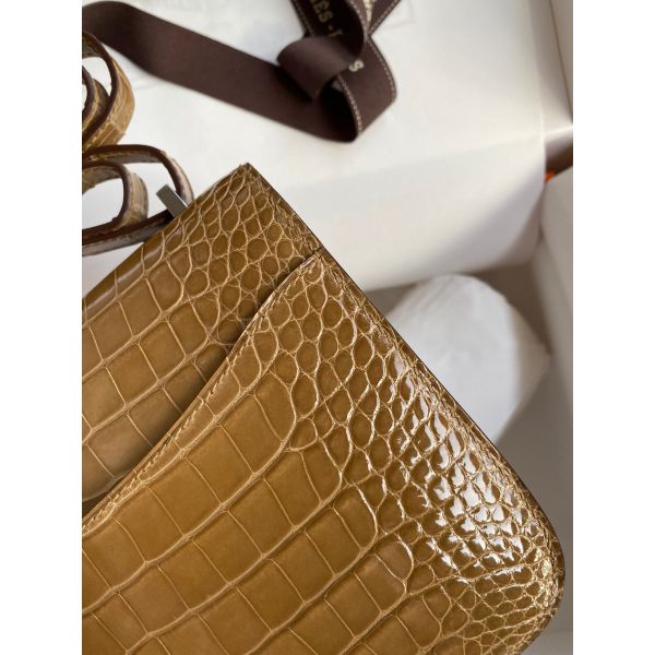Hermes Constance 18 Handmade Bag In Beige Shiny Alligator Leather