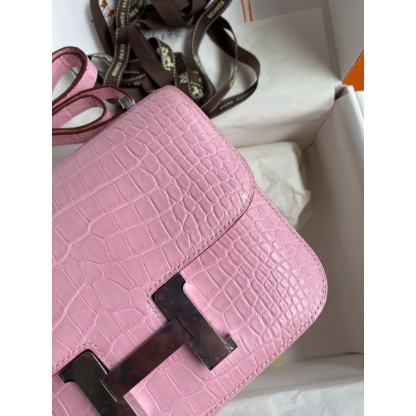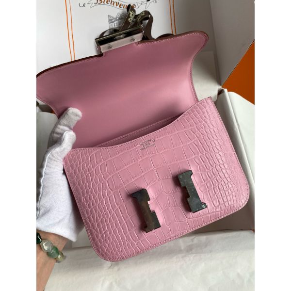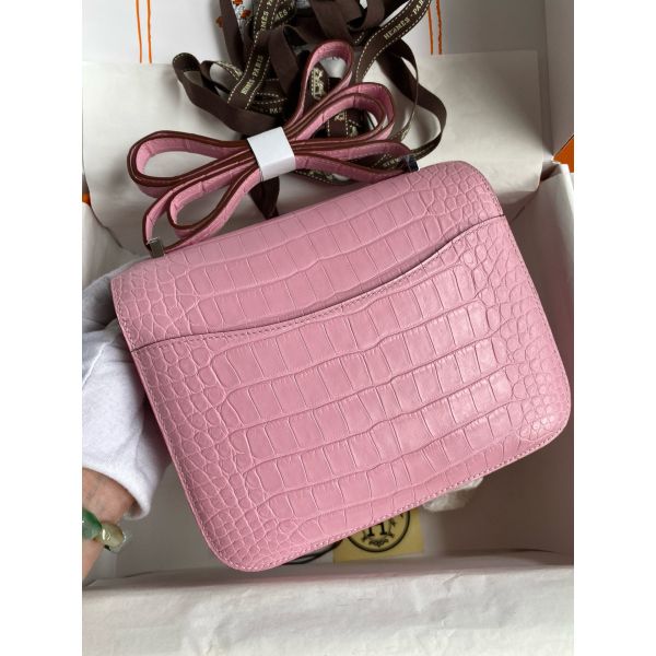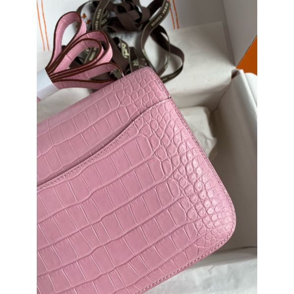 Hermes Constance 18 Handmade Bag in Rose Sakura Matte Alligator Leather