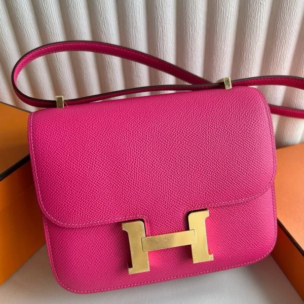 Introduced in 1969, the Hermès Constance quickly became one of the most highly sought-after of the brand’s luxury bags, behind only the Kelly bag and the Birkin. The Hermès Constance 18 is a stylish shoulder bag designed with versatility in mind. The Constance 18, also referred to as the Hermès Constance Mini. The squarish shape and large, prominent “H” closure across the front give this bag a youthful appeal, even when rendered in a durable Epsom calfskin, which is particularly popular because it tends to show color with greater vibrancy than most other leathers.