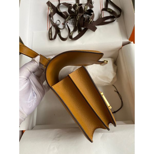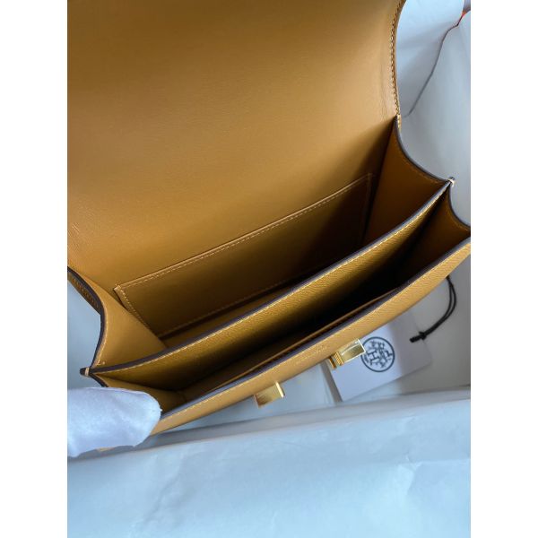 Introduced in 1969, the Hermès Constance quickly became one of the most highly sought-after of the brand’s luxury bags, behind only the Kelly bag and the Birkin. The Hermès Constance 18 is a stylish shoulder bag designed with versatility in mind. The Constance 18, also referred to as the Hermès Constance Mini. The squarish shape and large, prominent “H” closure across the front give this bag a youthful appeal, even when rendered in a durable Epsom calfskin, which is particularly popular because it tends to show color with greater vibrancy than most other leathers.