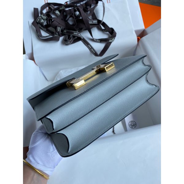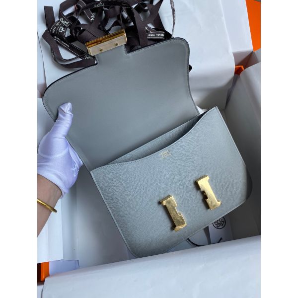 Hermes Constance 24 Handmade Bag In Blue Lin Epsom Calfskin