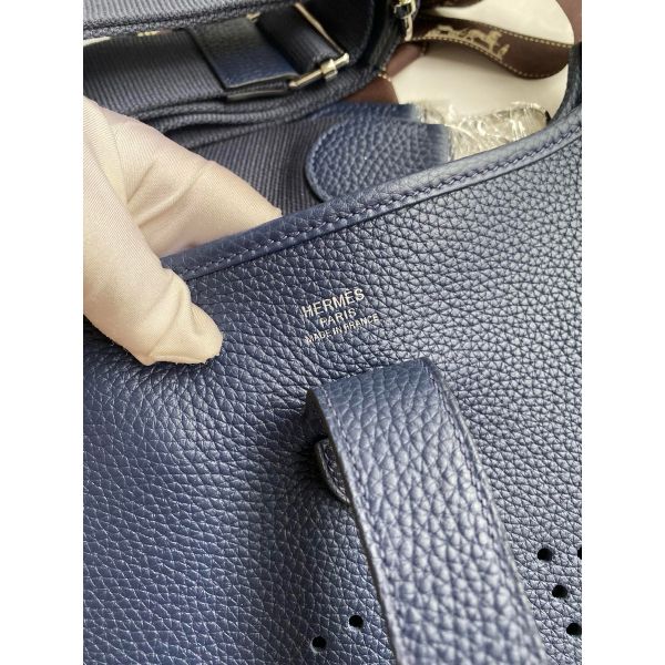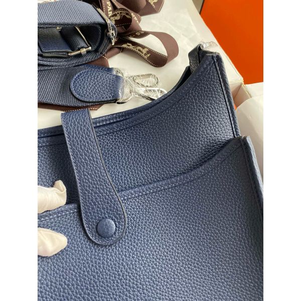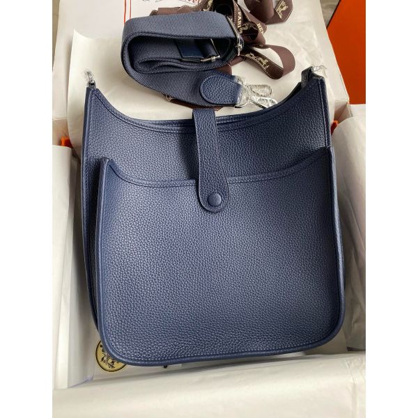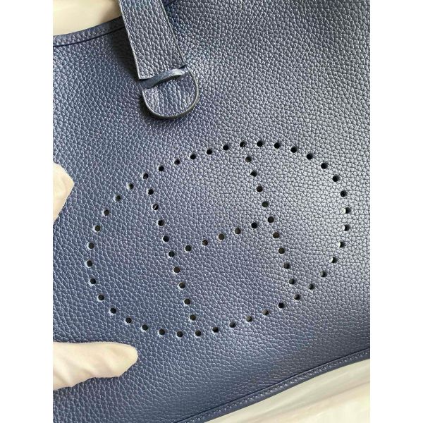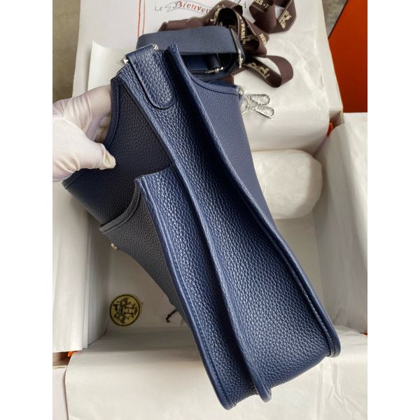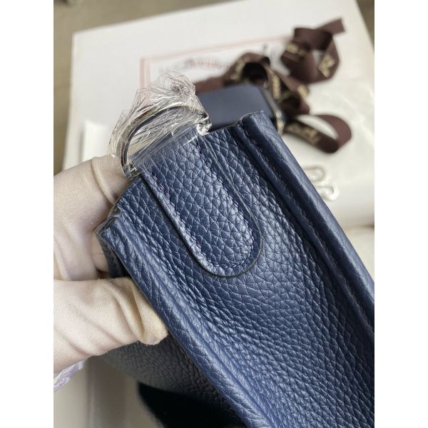 Hermes Evelyne III PM 29 Handmade Bag in Blue Saphir Clemence Leather