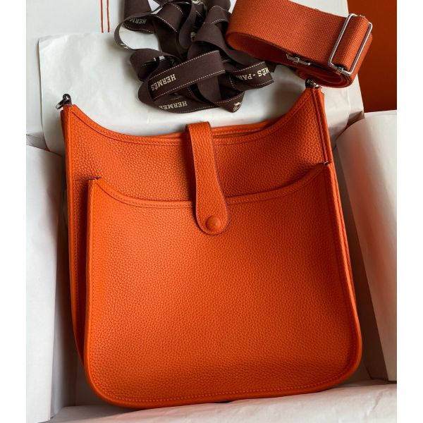 Hermes Evelyne III PM 29 Handmade Bag in Orange Clemence Leather