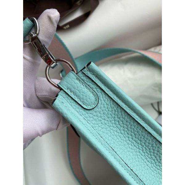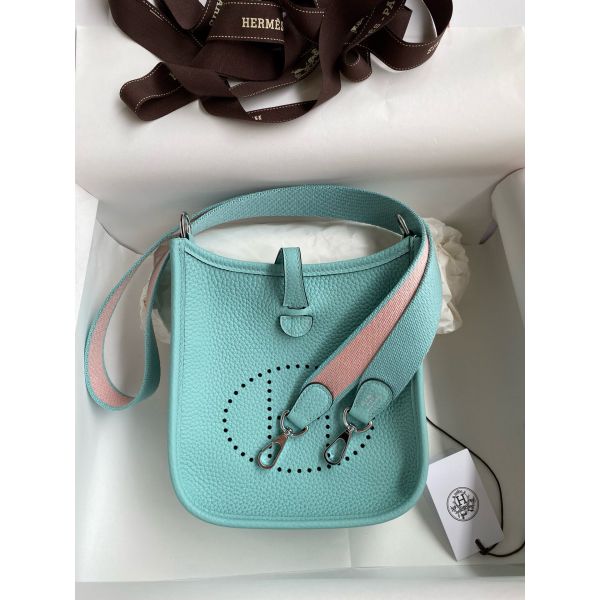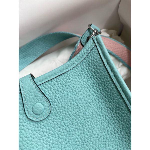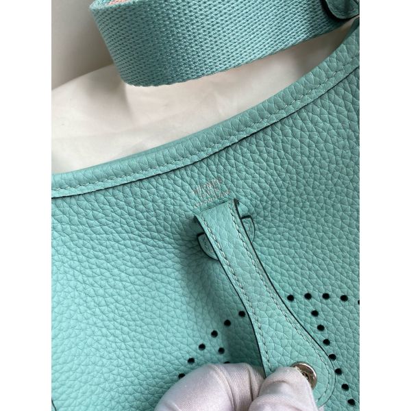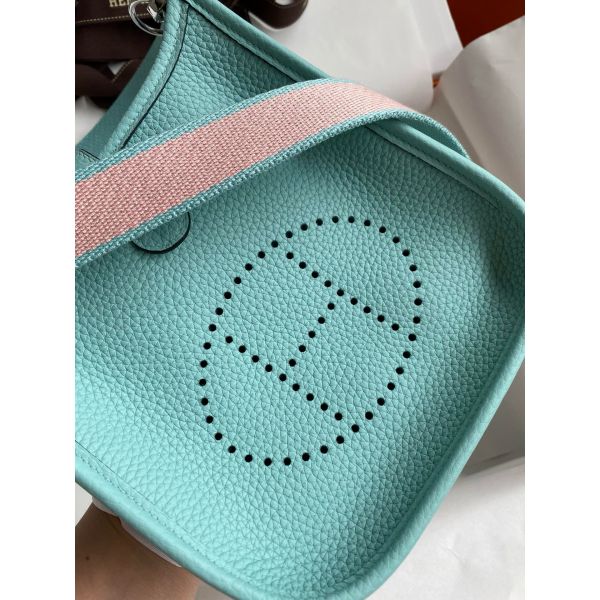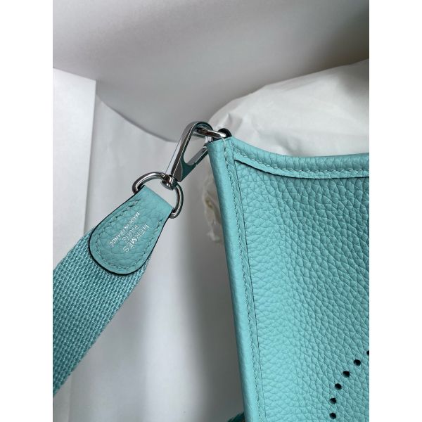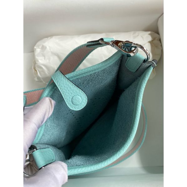 Hermes Evelyne Mini Handmade Bag in Blue Atoll Clemence Leather