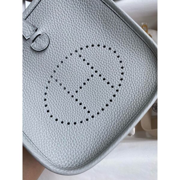Hermes Evelyne Mini Handmade Bag in Blue Brume Clemence Leather