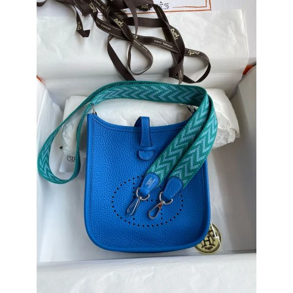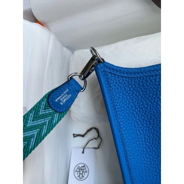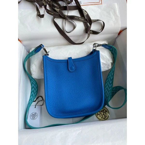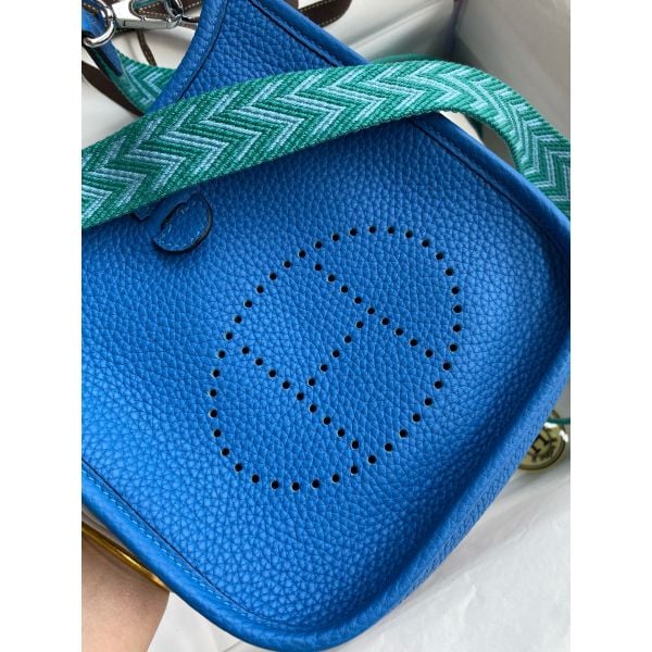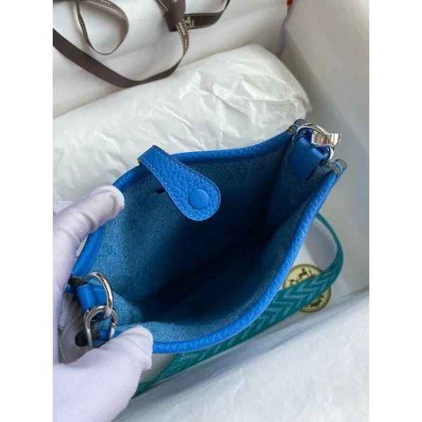 Hermes Evelyne Mini Handmade Bag in Blue Hydra Clemence Leather