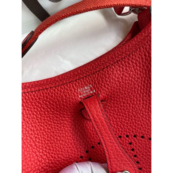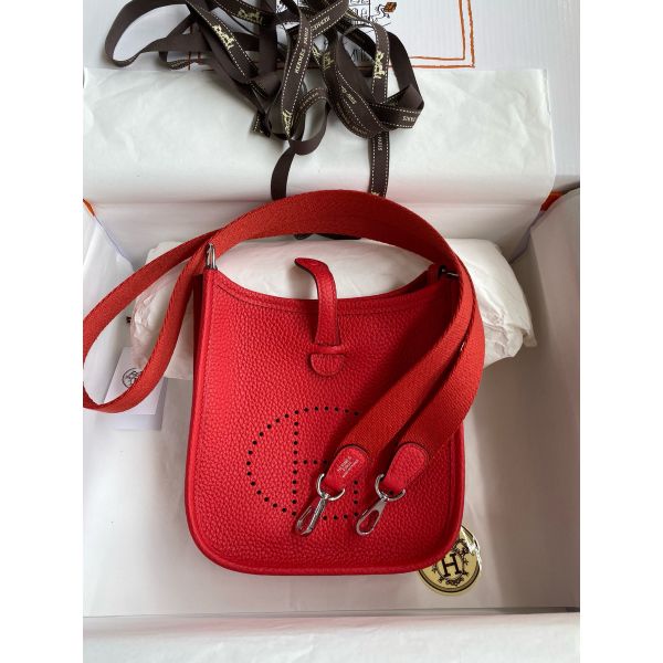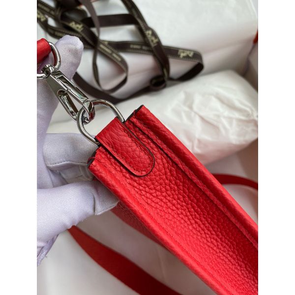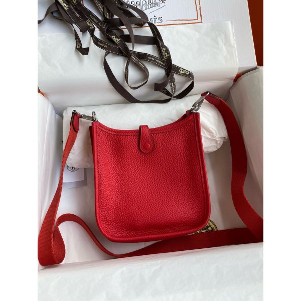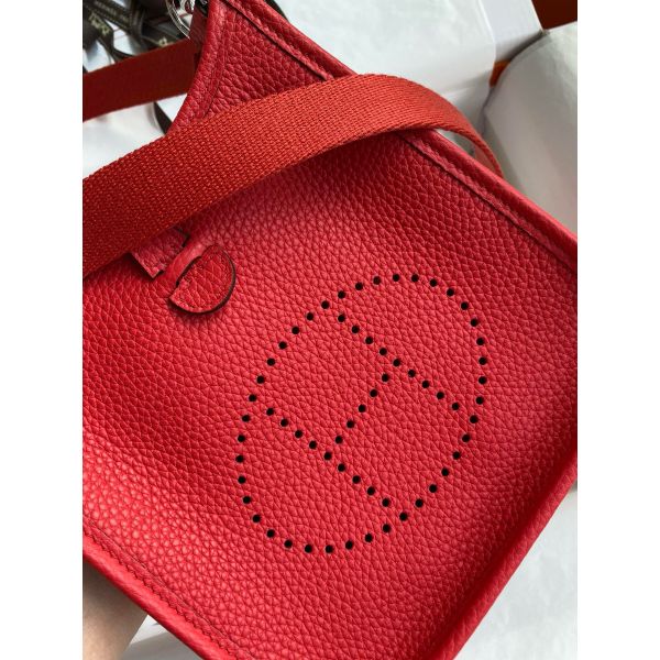 Hermes Evelyne Mini Handmade Bag in Red Clemence Leather