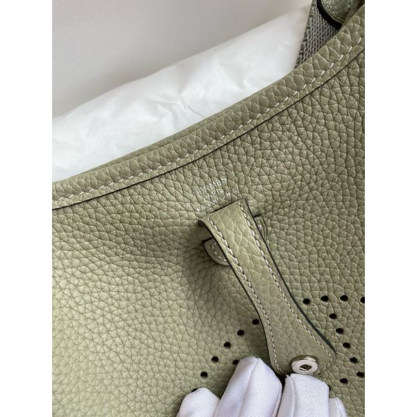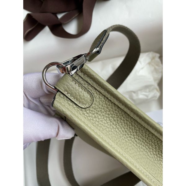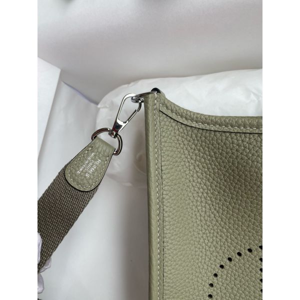 The Hermès Evelyne TPM, also known as the Hermès Evelyne Mini or Evelyne 16, is the smallest of the Evelyne line. As a “fashion” bag, the signature perforated “H” was now intended to be turned around and shown to the world. The addition of a crossbody strap and a mini size increased demand for the bag among fashionistas worldwide. The minimalist style and streamlined silhouette have made the Hermès Evelyne Mini the most popular of the non-quota bags the design house offers.