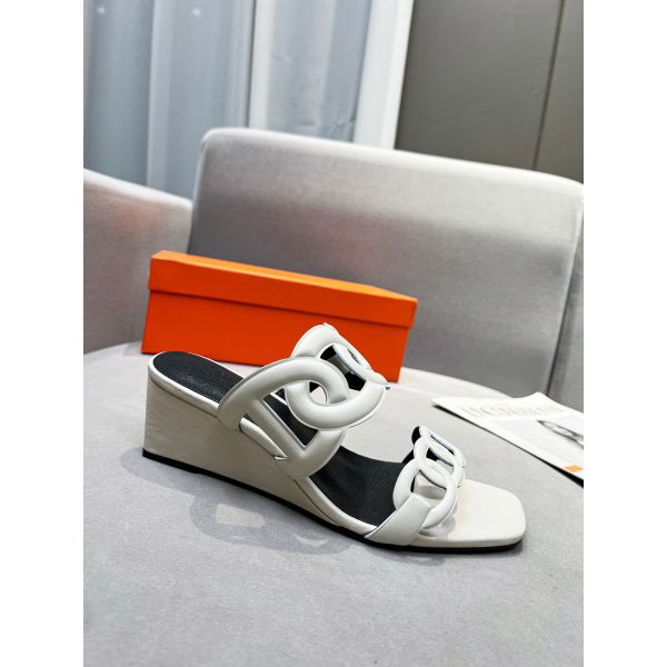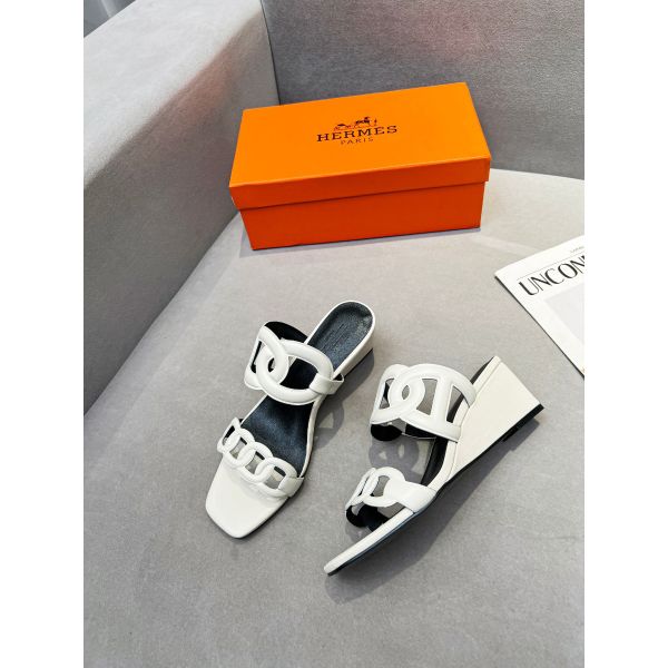 Hermes’s Figari sandals are set on 55mm wedge heels that offer comfortable lift. They’re made from nappa leather and have Iconic “Chaine d’Ancre” inspired straps for a chic and casual look, perfect for summer. Wear them with sundresses, jeans and skirts alike.