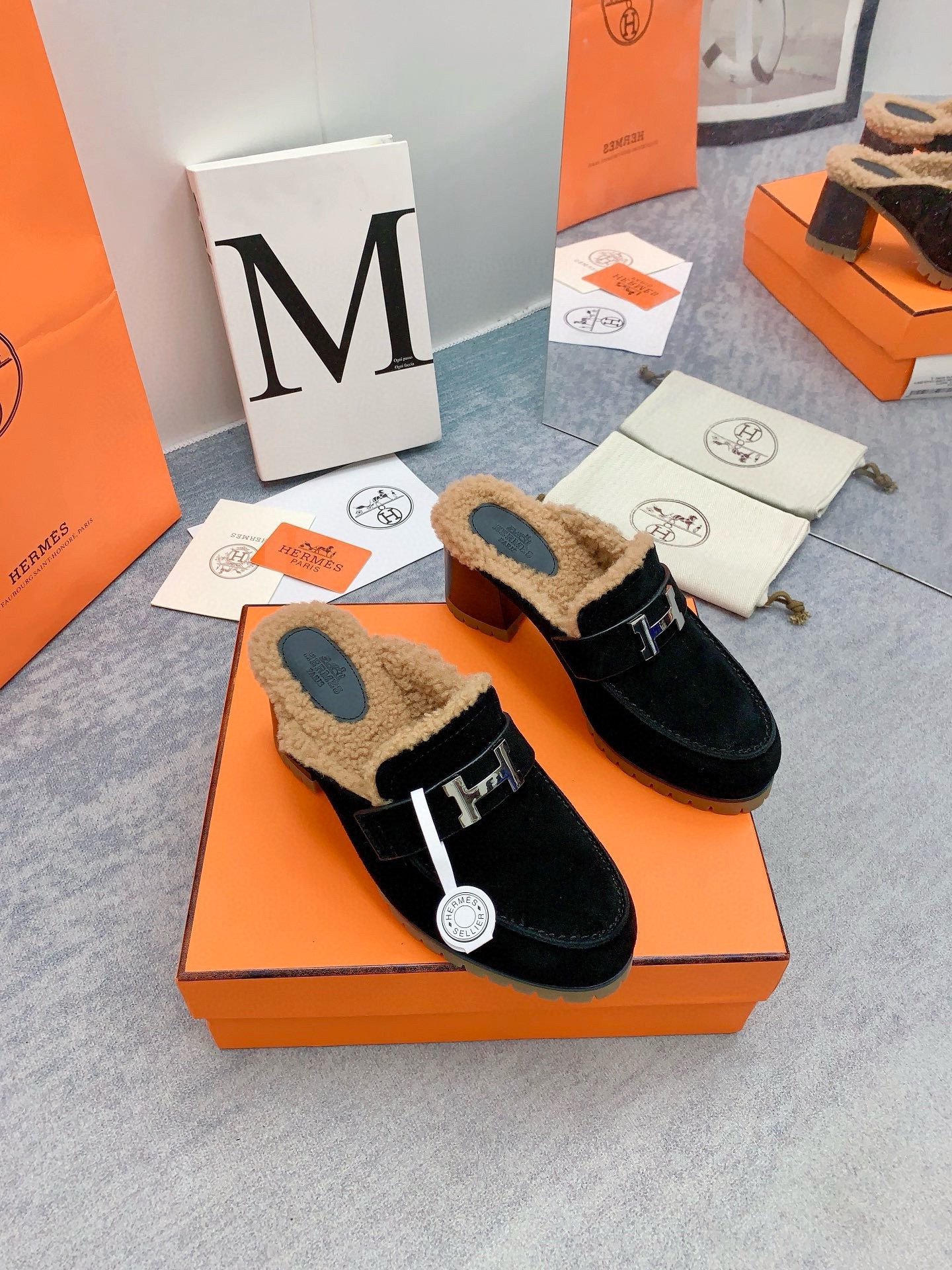 Hermes Flore 60 mules are embellished with palladium-plated signature “H” which give them a polished feel. They’ve been crafted from suede leather and lined in soft shearling to keep your feet warm. Wear yours with denim and midi dresses.