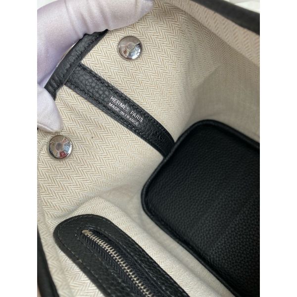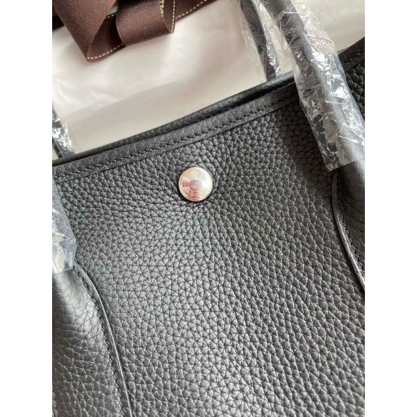 Hermes Garden Party 30 Handmade Bag in Black Clemence Leather