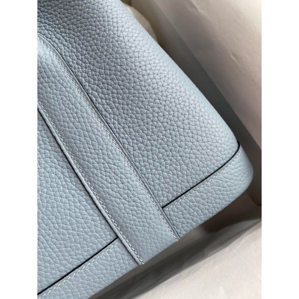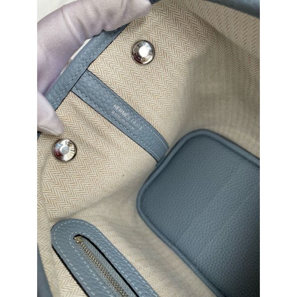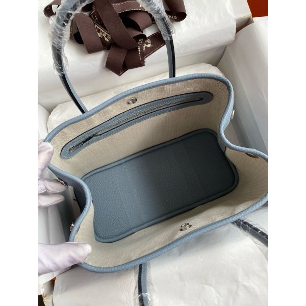 Hermes Garden Party 30 Handmade Bag in Blue Lin Clemence Leather