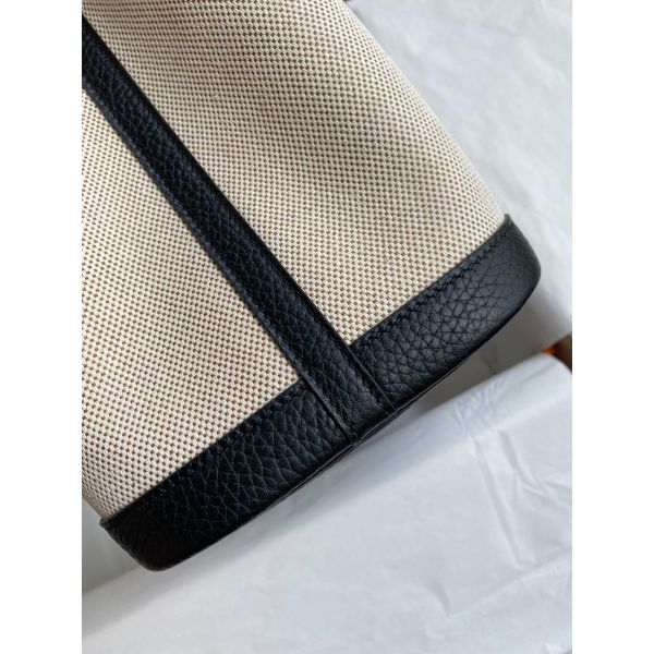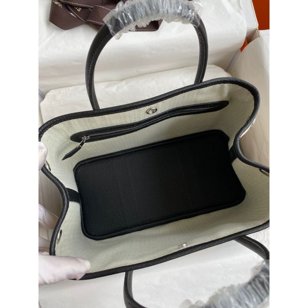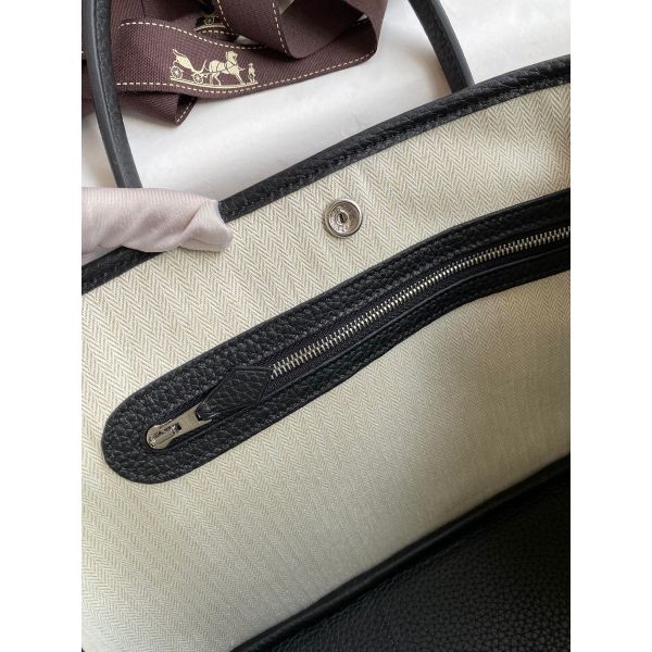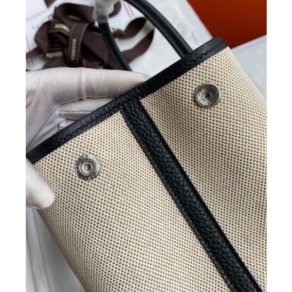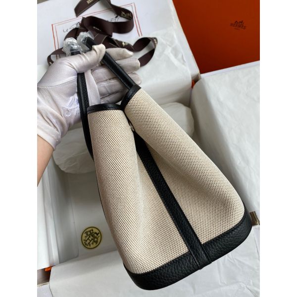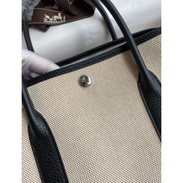 Hermes Garden Party 30 Handmade Bag in Toile and Black Leather