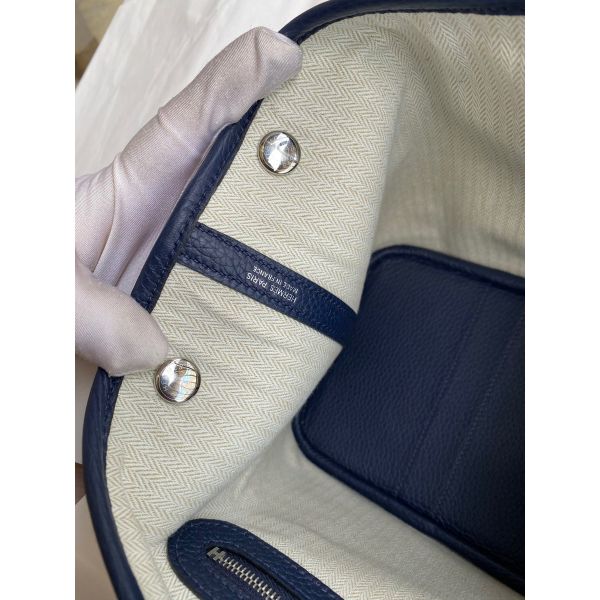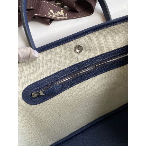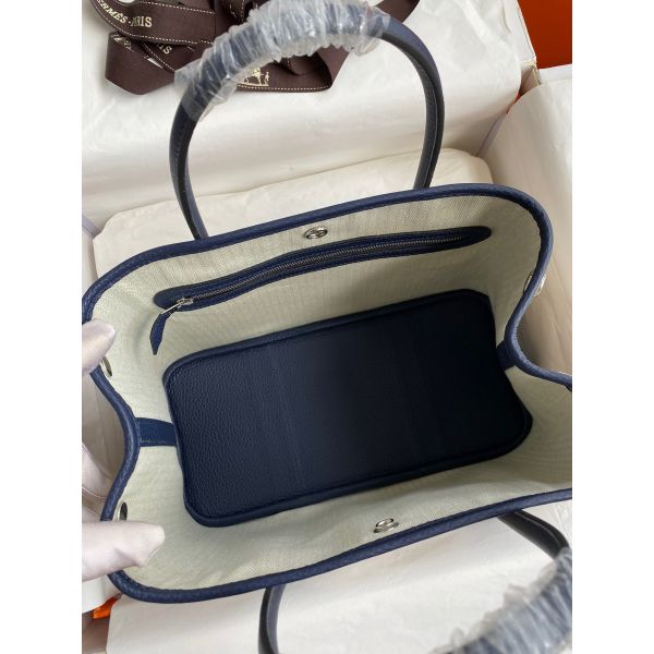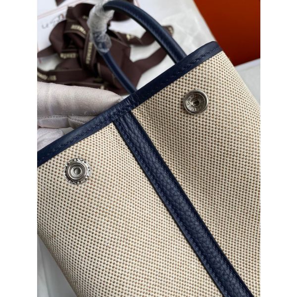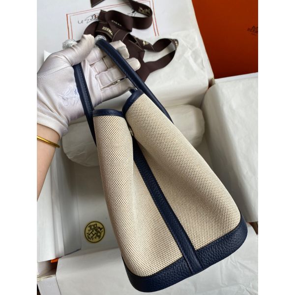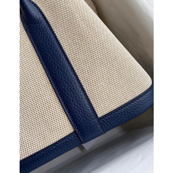 Hermes Garden Party 30 Handmade Bag in Toile and Blue Leather