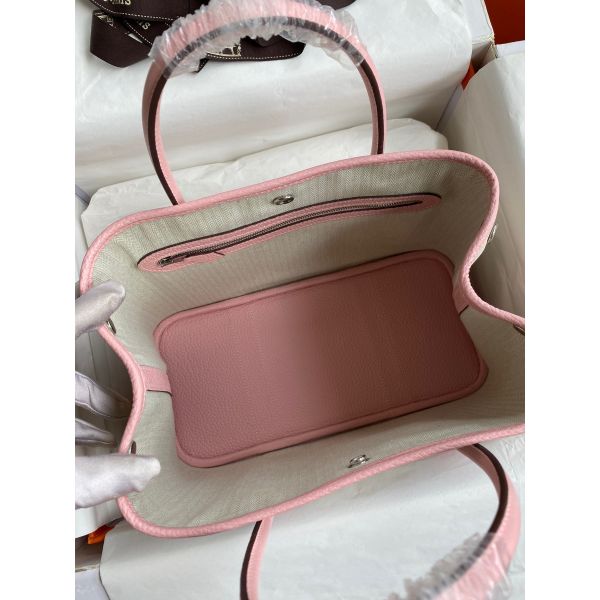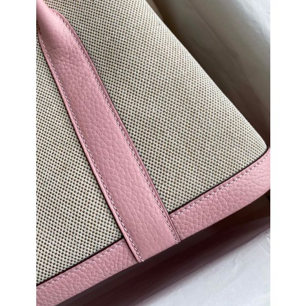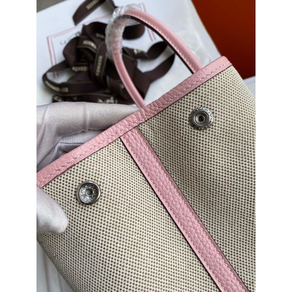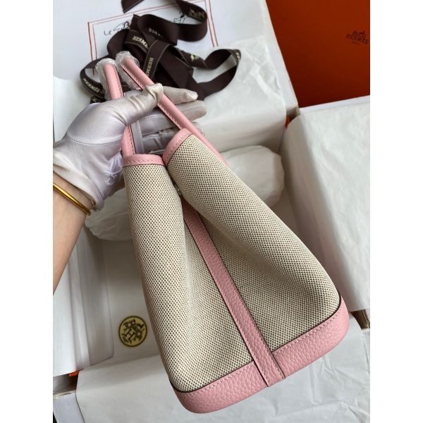 Hermes Garden Party 30 Handmade Bag in Toile and Pink Leather