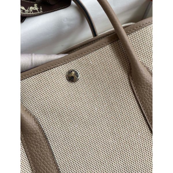 Hermes Garden Party 30 Handmade Bag in Toile and Tourterelle Leather