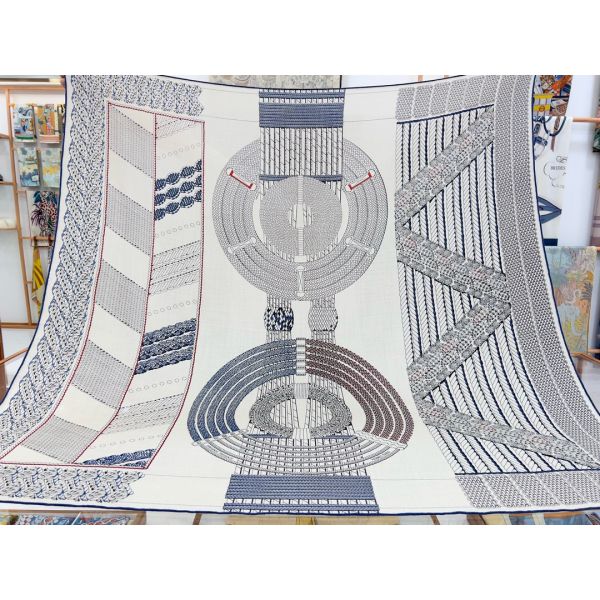 Hermes Grey Dressage Tressage Shawl 140