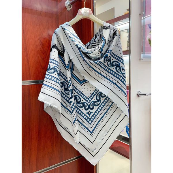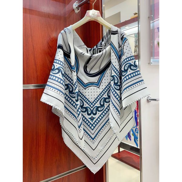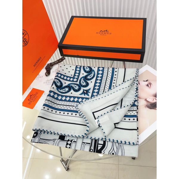 Hermes Grey Les Roues de Phaeton Bandana Shawl 140