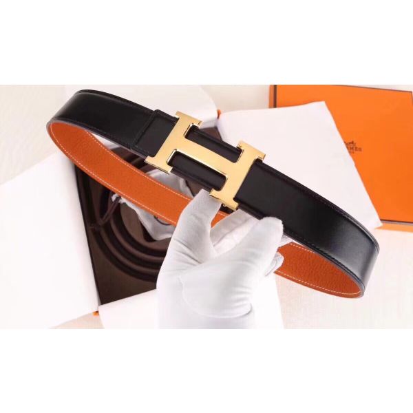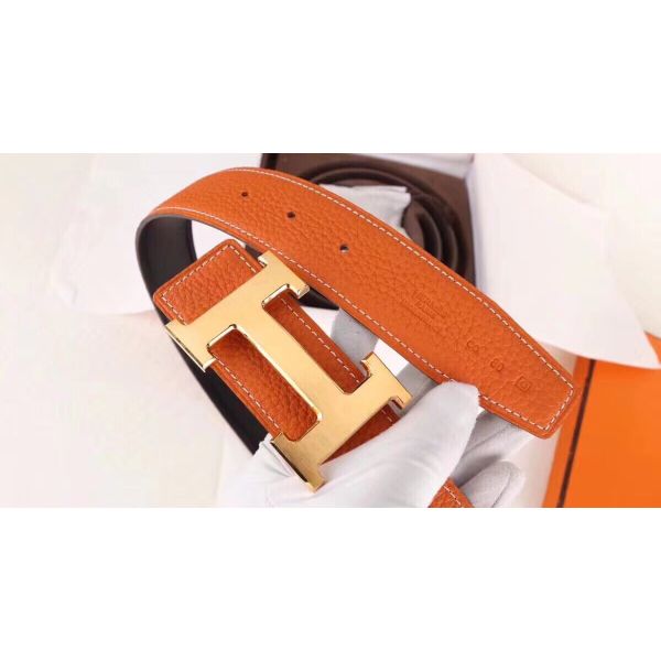 Hermes H Belt Buckle & Orange 32mm Clemence Strap