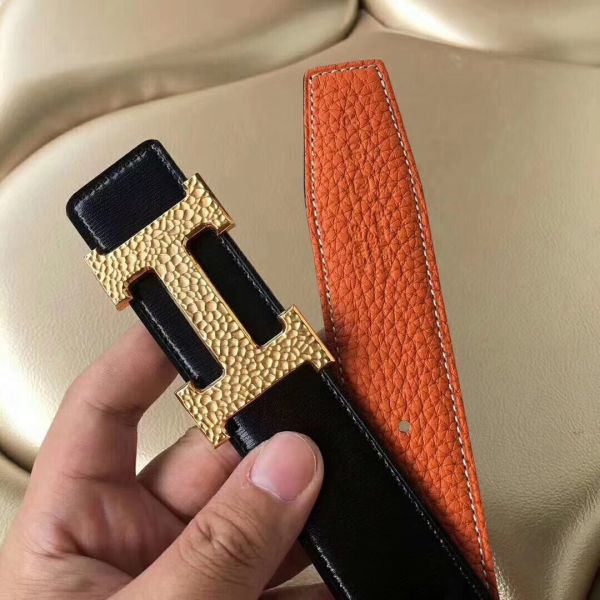Hermes H Belt Buckle & Orange Clemence 32 MM Strap