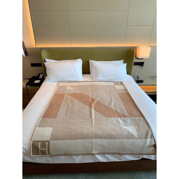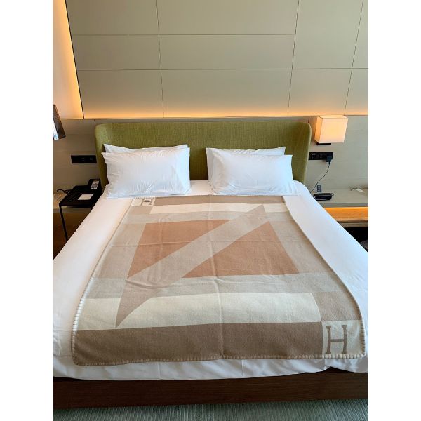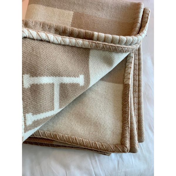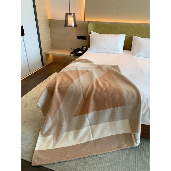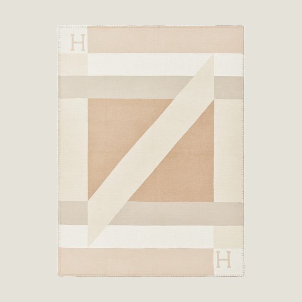 Hermes H Drapeau Blanket in Naturel and Grege Cashmere