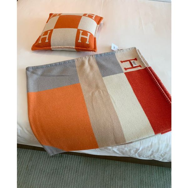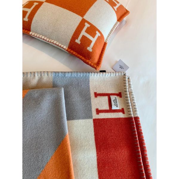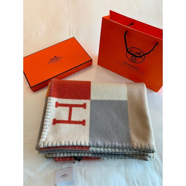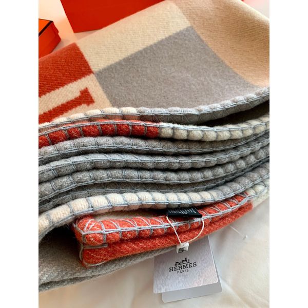Hermes H Drapeau Blanket in Terracotta and Grey Cashmere