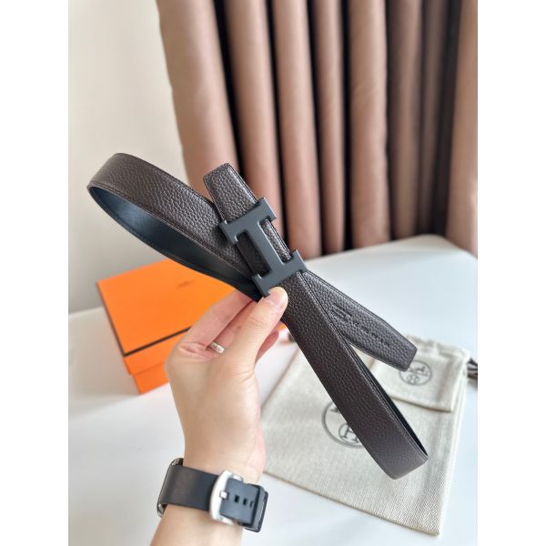 Hermes H Reversible 32MM Belt with Matte Buckle in Chocolate Clemence Leather