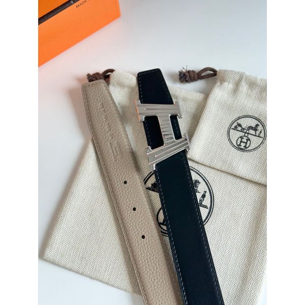 Hermes H Take Off Reversible Belt 32MM in Grey Clemence Leather