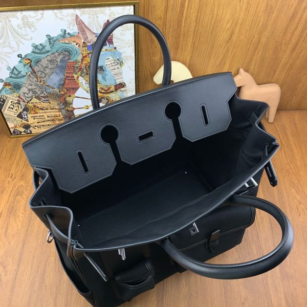 Hermes HAC Cargo Birkin 40 Handmade Bag in Black Toile