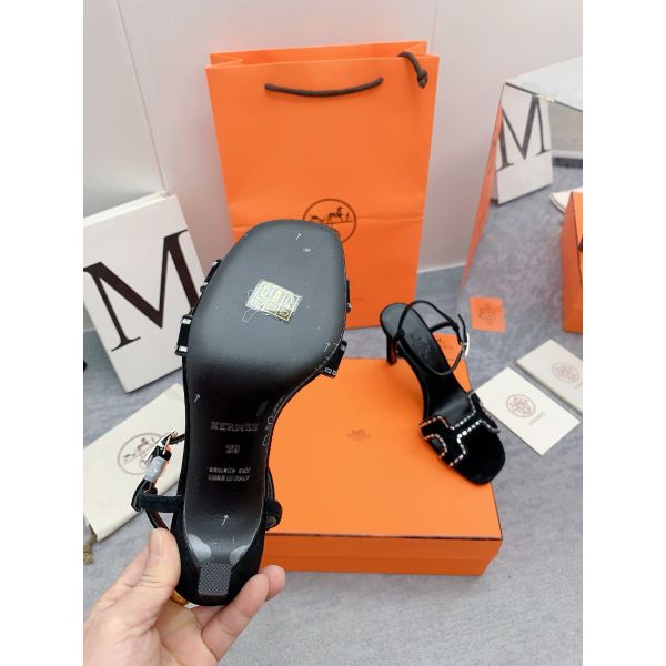 Step out in style for seasons to come with Hermes’s timeless Heden sandals. Made from suede leather with rhinestone details and palladium-plated Hapi buckle. They have “H” cut-out vamp and 80mm stiletto heels, while the wrap-around ankle strap for a chic feminine look.