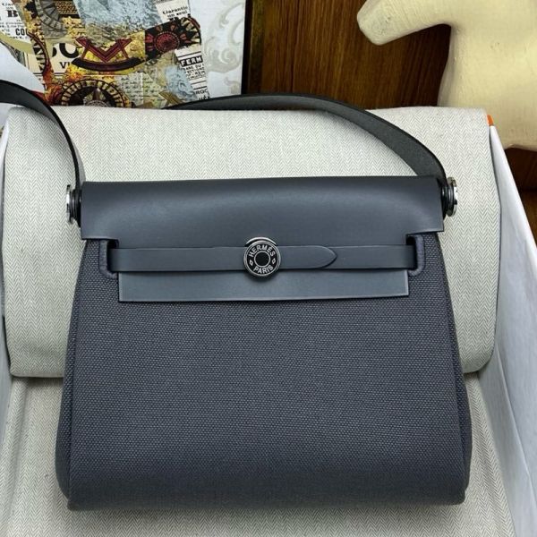 From the straps to the bell and the Clou de Selle clasp, the Herbag bag, composed of a canvas body and an unlined leather flap, highlights the Maison’s signature details. The Mini Herbag introduces several distinct features that set it apart from its larger counterparts. Downsized to petite but practical proportions, offering a compact yet functional design. Unlike the traditional Herbag design with its top handle, the Mini iteration opts for a wide crossbody strap, perfect for a crossbody. This updated design evokes comparisons to the Kelly Messenger, adding a contemporary edge to the Mini Herbag’s aesthetic.