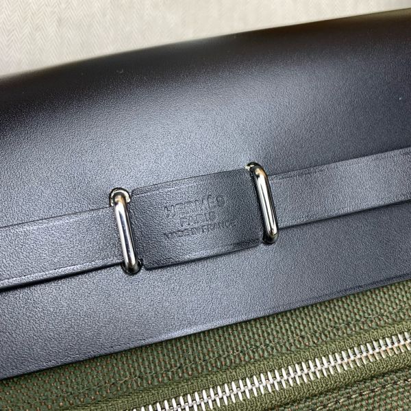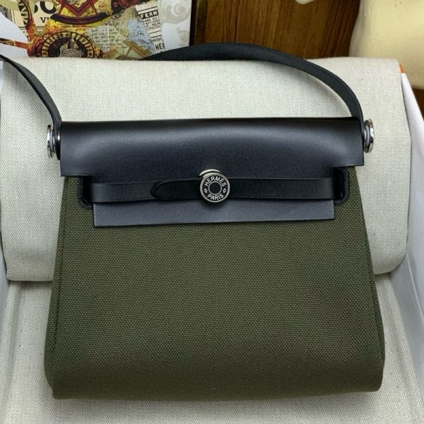 Hermes Herbag Zip 20 Bag in Green Canvas and Black Hunter Calfskin