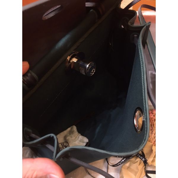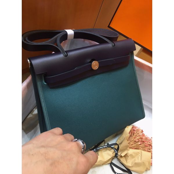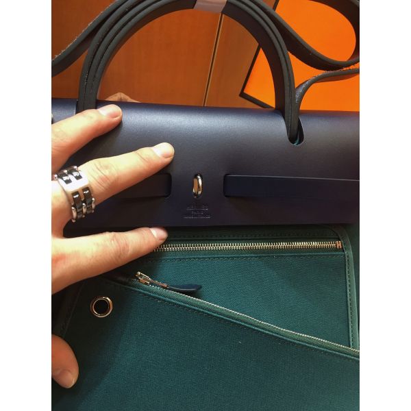 Hermes Herbag Zip 31cm Bag In Navy And Green