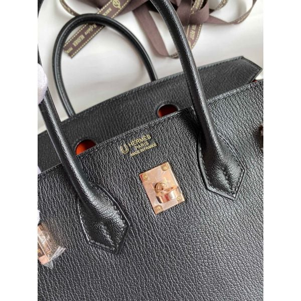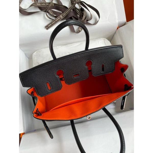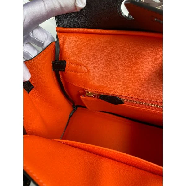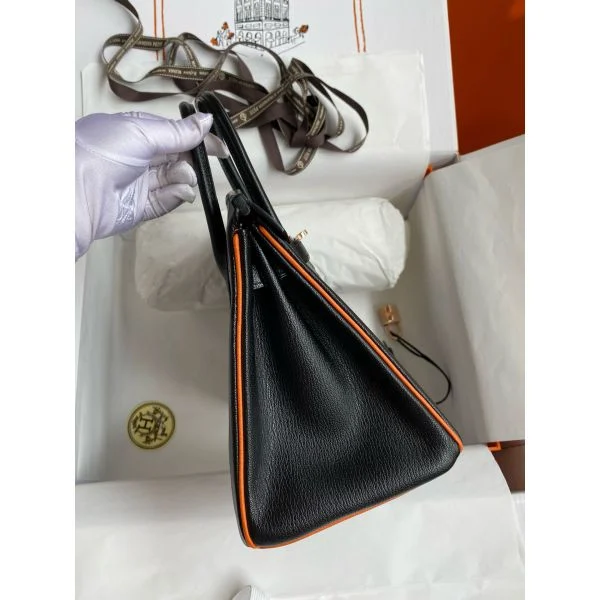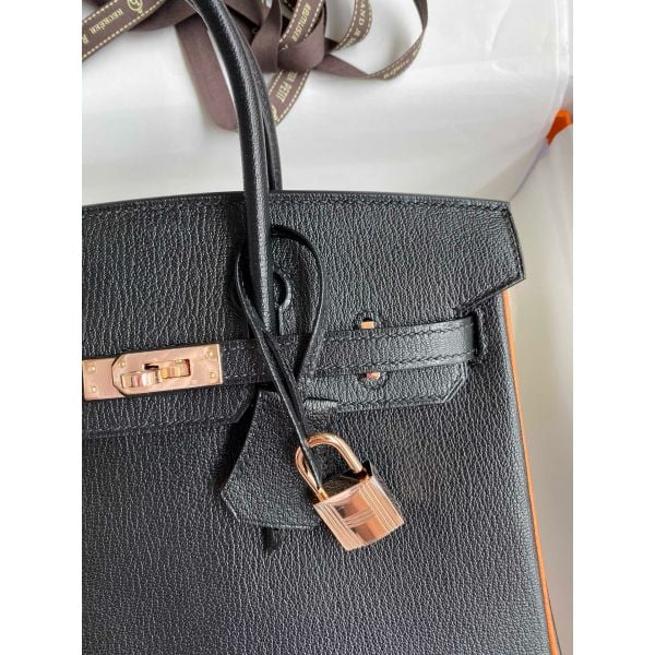 Hermes HSS Birkin 25 Bicolor Bag in Black and Orange Chevre Mysore Goatskin