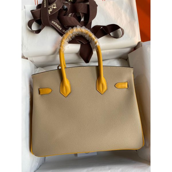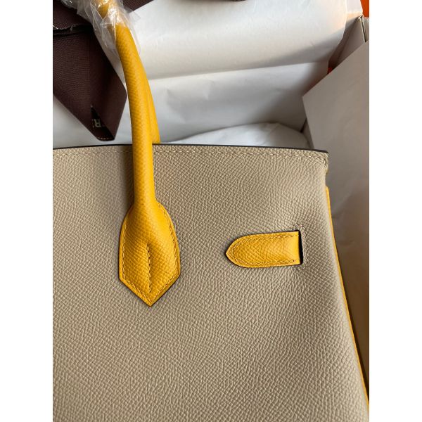 Hermes HSS Birkin 30 Bicolor Bag in Trench and Yellow Epsom Calfskin