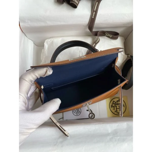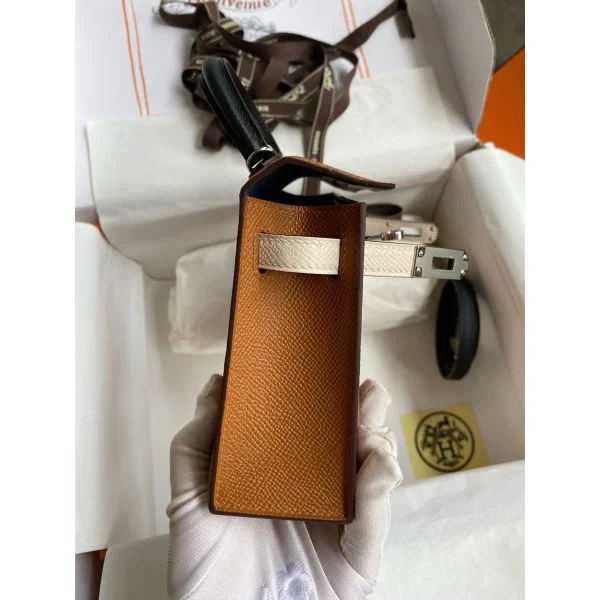 Hermes HSS Kelly Mini II Sellier Tri-color Bag in Gold/Craie/Black Epsom Calfskin