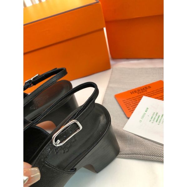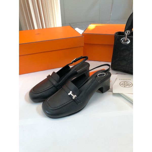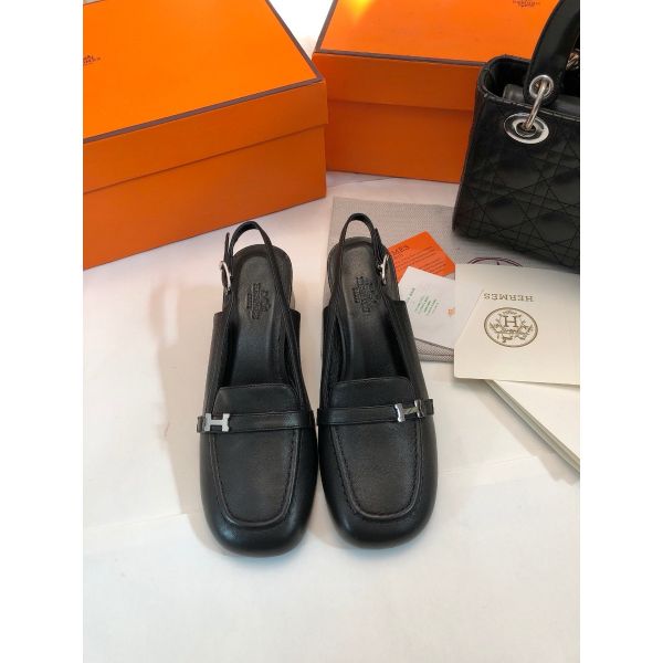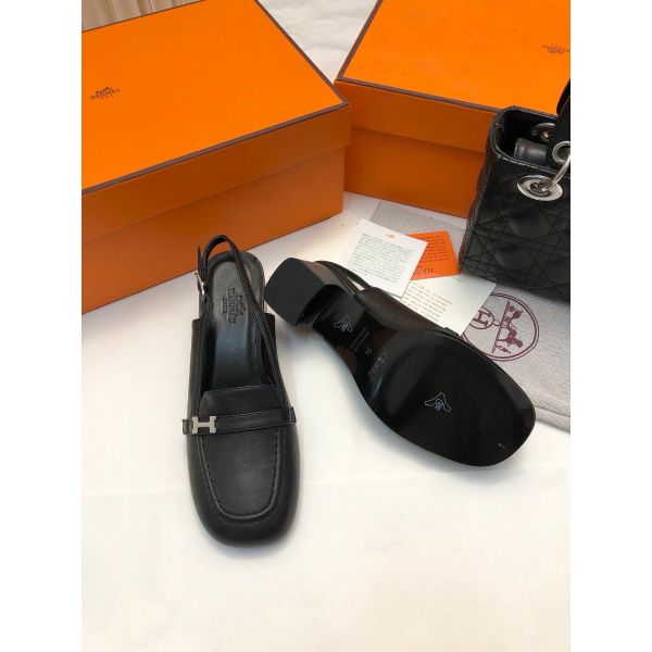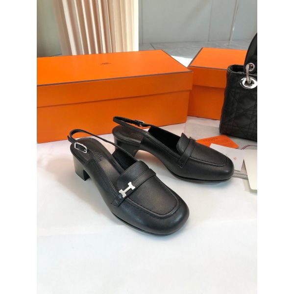 Hermes Infinie 50 Slingback Pumps in Black Leather